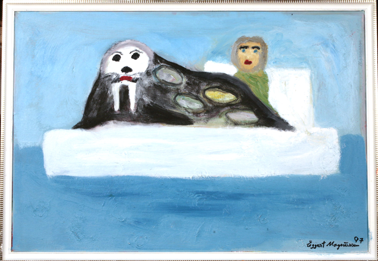 Eggert Magnússon (1915-2010) var sjálfmenntaður listamaður og einn af þekktustu naívistum þjóðarinnar. Hann hóf að mála myndir upp úr 1960 samhliða sjómennsku en hann stundaði bæði veiðar við Grænland og strendur Gambíu í Afríku. Myndefni sín sótti Eggert gjarnan til þeirra framandi slóða sem hann hafði heimsótt, minningarbrot eða fréttnæma viðburði.