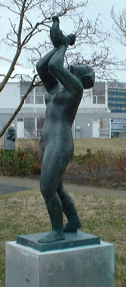 Verkið er staðsett í höggmyndagarði við Ásmundarsafn. Þessa mynd gerði Ásmundur í gifs þegar hann var búsettur í París og hafði vinnustofu í Constansgötu 11 í Montmartre-hverfi. Myndin var steypt í brons árið 1955 og sett upp við Reykjalund. Þetta er einföld og ljóðræn mynd og vitnar um þekkingu listamannsins á anatómíu og hefðbundnum hlutföllum sem þó eru rofin milli konunnar og barnsins. Barnið virkar of lítið í höndum hennar og gefur verkinu þannig yfirnáttúrlegt inntak. Þó að líkami konunnar sé þykkur og massífur, þá er hann einnig gæddur mjúkri hreyfingu, eins konar hornalínu sem gengur frá hægri fæti upp í gegnum líkamann allan og beinir athygli áhorfandans að barninu í höndum konunnar. Í myndinni má sjá að hár konunnar er stílfært á eindreginn hátt og gefur það verkinu forn-klassískt yfirbragð. Enda ekki að undra því eins og nafnið bendir til er hér um að ræða vísun í gríska goðafræði. Amor, með boga sinn og örvar, er rómversk samsvörun ástarguðsins Erosar sem sagður var sonur Afródítu og Aresar. Goðafræði Forn-Grikkja segir okkur að Eros skjóti mannfólkið með örvum sínum og tendri ástina. Í þessu verki eru tengslin á milli konunnar og barnsins nokkuð tvíræð. Viðmót þeirra minnir fremur en annað á samband barns og móður. Hér höfum við því að öllum líkindum Afródítu og Eros.